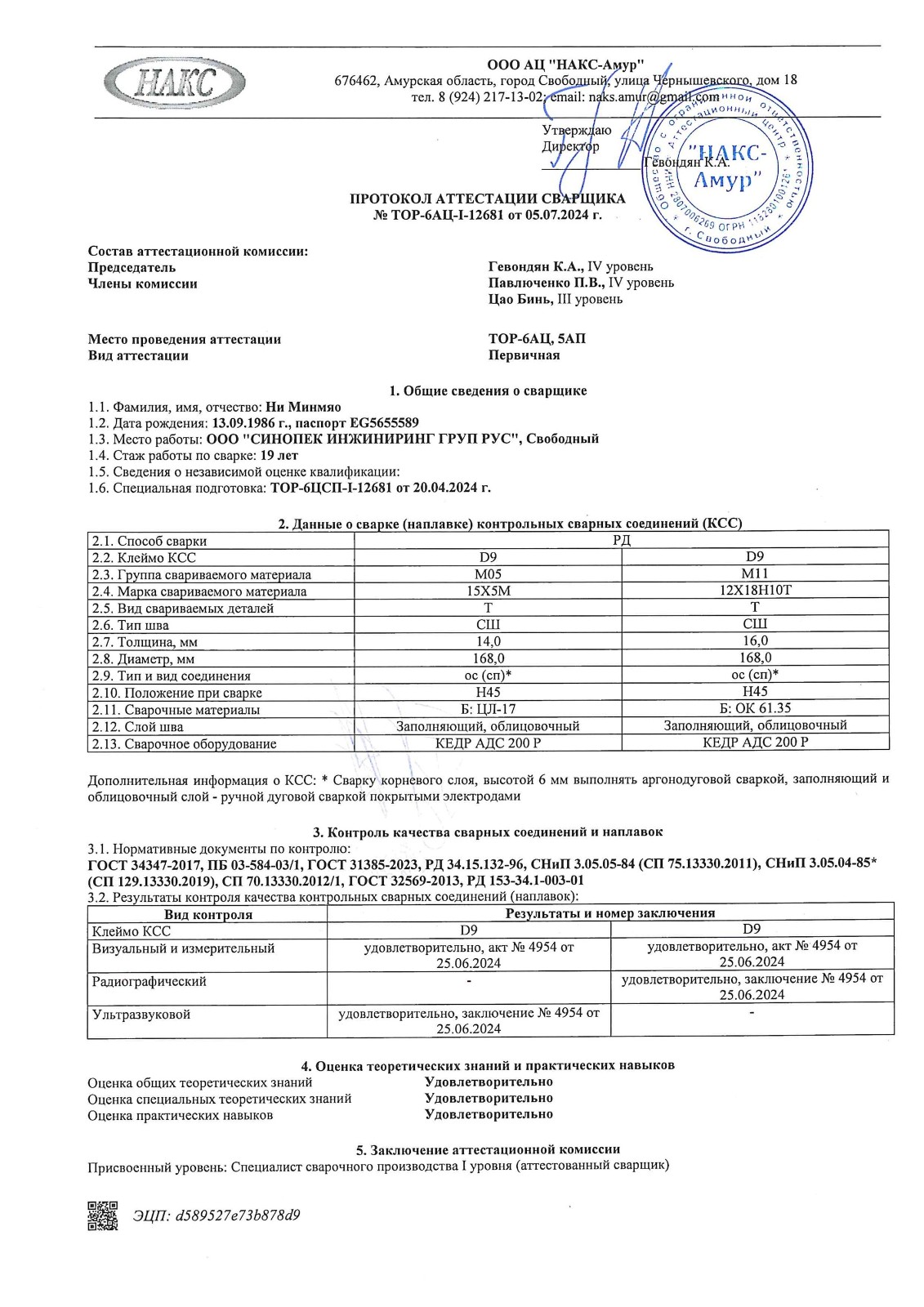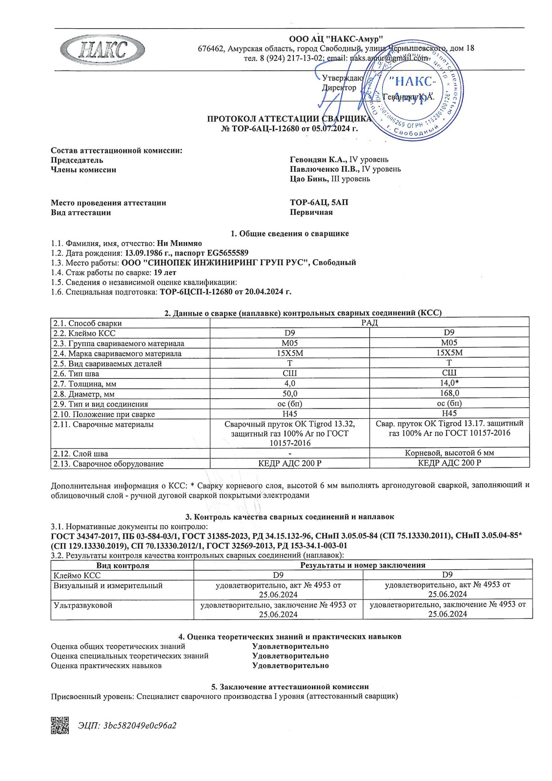 俄罗斯NAKS证书样板